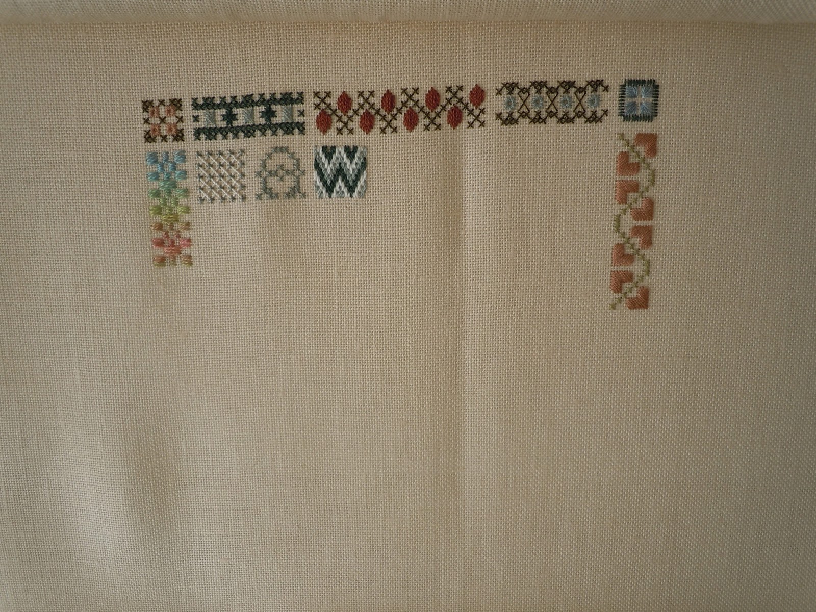 Finally I made a start on Ellen Chester's Quaker Sampling III. I bought this to be a sort of companion piece to the other of Ellen's I did for my parents 50th Wedding anniversary. For those familiar with this piece you will immediately notice that I changed the fabric and the fiber color. The fabulous Drema at Needlecraft Corner helped me find the perfect blue fiber and a fabric to make it pop.
