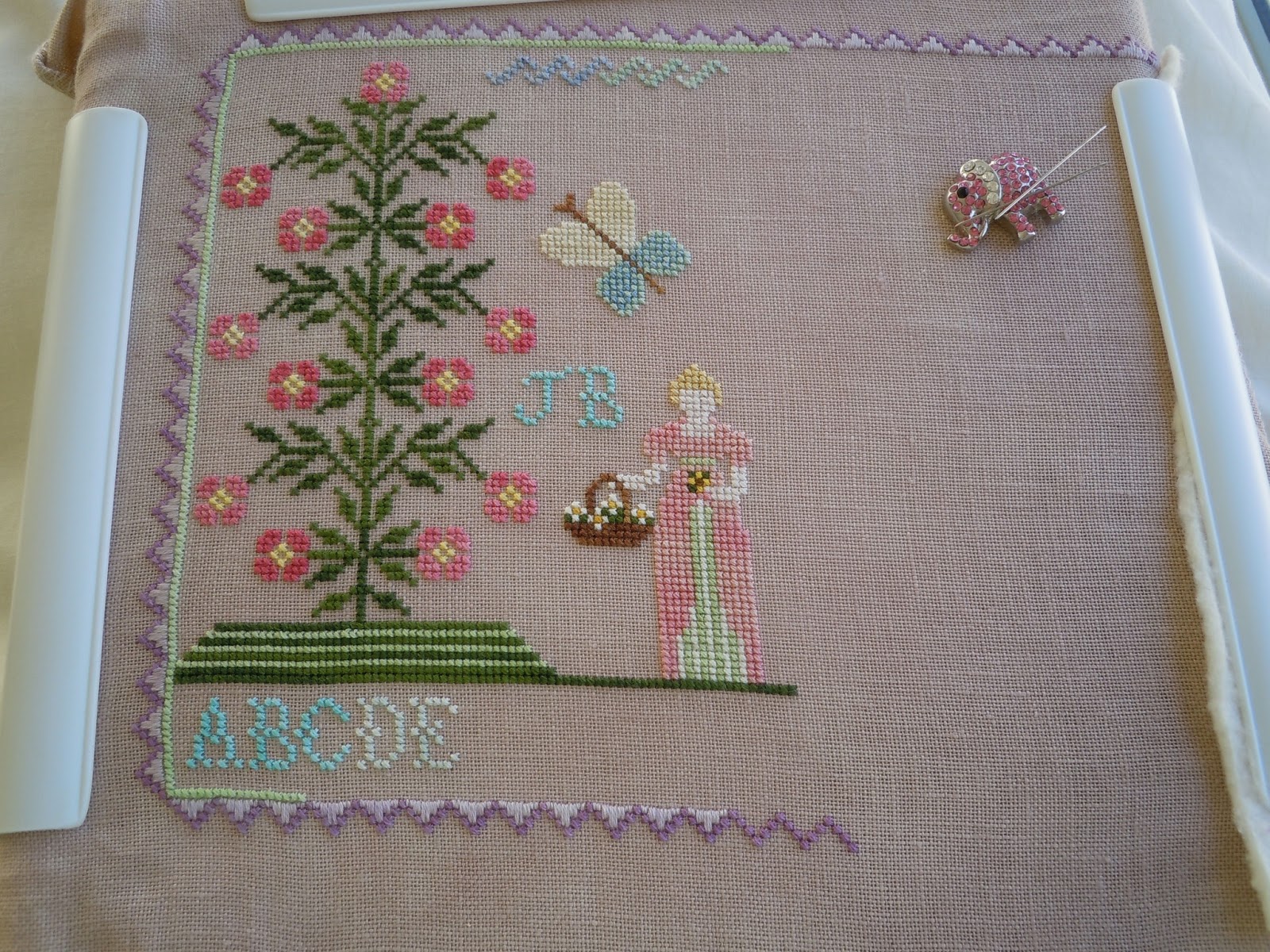 I didn't make any further progress on the pieces I showed at the mid-month point. Oh, for those wondering, yes all of these are also part of my EGA chapter's finishing challenge. I'll show you the final ones later this month. The ornament will have to be completely finished before it can count as completed for the challenge, but for purely stitching it's my first finish of 2013!